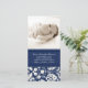 Baby Shower le agradece las tarjetas de la foto en azules marinos y blanco oscuros elegantes y modernos con el modelo floral delicado del vintage del damasco. Una de manera perfecta de agradecer amigos y a la familia por regalos de la fiesta de bienvenida al bebé y de compartir sus fotos del bebé. Disponible en muchos producto a juego para su ducha.