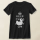 El pato de goma blanco y negro guarda calma y continúa el gráfico en una camiseta negra. Un lema británico del tiempo de guerra con una torsión chistosa del artista Elke Clarke. Gran arrancador de la conversación y regalo de motivación de la diversión. Elke Clarke© para MovieFun