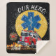 El bombero EMS envuelto en una manta Sherpa