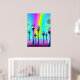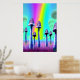Un colorido arte de un bosque de champiñones con luz colorida en el cielo. Este es un arte generado por IA