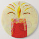 Este diseño colorido muestra la llama que brilla intensamente de una vela roja alegre. De un collage original del corte-papel.