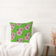 Da un ambiente tropical a cualquier habitación con esta colorida almohada de tiro. Flores de plumeria blanca amarilla, dos hibiscos rosados y hojas de palmera tropicales verdes en un patrón editable sobre fondo transparente (verde usado en la muestra).