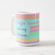 Una taza de café moderna brillante a comenzar su día, rayas modernas y colores brillantes.