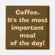 10 de cada 10 adictos al café están de acuerdo con este imán. El diseño presenta un fondo café marrón y una escritura cremosa que dice: "Café. ¡Es la comida más importante del día!" Oye, no invento esto. ¡Es ciencia!