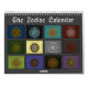 Cada página de este calendario ofrece una mandala temática del zodiaco con las diversas piedras preciosas rodeadas por el símbolo para la muestra, la constelación, y el símbolo alquímico para el elemento entre afiligranado y teje.