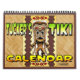 El calendario Tiki del veterano artista de animación Keith Tucker. La cultura tiki, también conocida como pop polinesio, llegó por primera vez a Estados Unidos en los años 30. Es un derivado único que se inspira en parte en las tallas tiki y la mitología de las islas polinesias, hawaianas y del mar del Sur, aunque la conexión es holgada y estilística.
