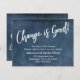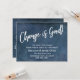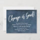 Mantén a tus amigos y familiares al día con tu nueva dirección usando estas sencillas y elegantes tarjetas de invitación. Puede insertarlas en sus correos temáticos sobre el boda o compartirlas en persona, según lo considere oportuno. Tanto si eres recién casado como si solo quieres un diseño único para que tu tribu sepa cómo encontrarte, esta carta es lo suficientemente versátil para cualquiera. Presenta gráficos de tipografía de bonito que dicen "¡El cambio es bueno!" en la parte delantera y "¡Mantente en contacto!" en la parte trasera, usando un tipo de letra de escritura moderno, informal y manuscrita. Utilice los campos de plantilla para agregar todos sus propios detalles para personalizar este diseño para su propio uso. El tipo blanco se colocó sobre un fondo azul marino gris texturado vintage. Si prefieres reemplazar esta imagen por otra de fondo, también es posible. // 105 //