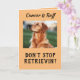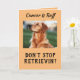 Expresa tu ánimo a un sobreviviente de cáncer con una tarjeta de perro retriever dorado positiva “No dejes de recuperar”. El perro campeón está posado de manera fuerte y valiente. "El cáncer es duro", pero el verso interior trae coraje y pensamientos cariñosos.
