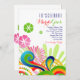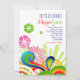 Un festivo, blanco, invitación con brillante, abstracto, formas y colores del carnaval que es perfecto para una celebración del carnaval. (Punto de congelación)