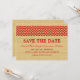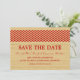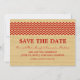 Moderno y de moda Chevron Rústico Salven el Anuncio de Fecha con un fondo de textura de carpintero impreso en arte digital y un patrón zag zig de rayas de chevron rojo oscuro. Este diseño es perfecto para anunciar una boda rústica y elegante. Fácil de personalizar, simplemente añada los detalles de su boda. Haga clic en "Personalizar" para encontrar más opciones de personalización.