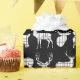 Siluetas blancas rústicas de ciervo y cabeza de ciervo sobre papel de envoltura negro.