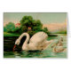 Un precioso ilustracion vintage de cisnes nadando en un lago.