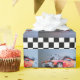 ¡Hinchas de las ruedas calientes! ¡Qué tal si un auto se estrellara justo a través de la pared! Coche rojo con trabajo de pintura en llamas que atraviesa una pared gris. Acentos negros que puedes personalizar si lo deseas.