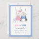 Invitación azul linda del cumpleaños del conejo de conejito para sus gemelos que ofrecen conejitos dibujados mano adorable del muchacho y del chica.