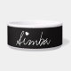 Los cuencos conocidos modificados para requisitos particulares para los mascotas se crean en la "tiza blanca en un estilo del tablero negro". Hay un corazón blanco puesto sobre "yo". Si el su nombre de mascota no me tiene "" en el deletreo, esta imagen del corazón se puede quitar o agrandar simplemente y poner a otra parte en la taza.