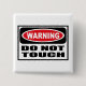 El cuidado NO TOCA el botón que usted puede modificar para requisitos particulares en www.WarningSignShirts.com y que ofrece una señal de peligro roja y negra y que NO LA TOCA en letras negras intrépidas para advertir el mundo. Usted puede también modificar su propio botón de la señal para requisitos particulares de peligro con el texto que usted quiere.