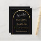 Una tarjeta Save the Date para una fiesta de cumpleaños número 70 (o cualquier edad). Un fondo negro, decorado con un falso arco dorado. Personalice y agregue una fecha y su nombre. El texto: Ochenta y Guardar la fecha está escrito con un gran guión de estilo a mano a la moda. 1 hoja = 1 guardar la fecha de borde impreso en borde.