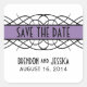 Elegante y elegante Deco Flourish Save the Date Pegatinas con un elegante borde de lavanda giratoria. Este elegante diseño es la elección perfecta para anunciar un boda de moda de deco vintage. Fácil de personalizar, simplemente agregue los detalles de su boda en los campos de texto proporcionados. Haga clic en "Personalizar" para encontrar más opciones de personalización.