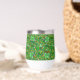 Celebración del Día de San Patricio con tazas heladas llenas de bebidas verdes, shamrock en muchos tonos verdes y monedas de oro. Inclinado con los colores de la bandera irlandesa. La corbata de moda de los hombres divertidos para un brunch del Día de San Patricio, desfile, rastreo de bares, fiesta del día de St. Paddy, celebración de oficinas, apariencia casual de negocios.