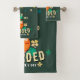 Set de toallas de baño St. Patrick's Day Leprechaun con barba y suerte. Celebre el Día de San Patricio con estilo con estas toallas de baño festivas con un diseño de estilo Leprechaun vibrante. El audaz leprechaun barbudo, vestido con un traje verde tradicional y sombrero de tope, está rodeado de afortunados tréboles dorados y verdes. El lúgubre texto, "¡Suertudo y con barba!", añade un giro humorístico, perfecto para todo aquel que ame la cultura irlandesa, las barbas, o sólo un poco de buena suerte. Es una adición divertida y afortunada a cualquier baño.