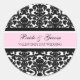 Sellos para sobres pegatinas de nombre Bride y Groom para boda de temática El día de San Valentín, con elegante y moderno diseño rosa rosa pastel claro, blanco y negro vintage de damasco floral. Personalizable completo con tu propio texto, la adición perfecta a tus invitaciones de boda El día de San Valentín.