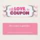Los cupones de amor de los El día de San Valentín personalizados. Perfecto regalo para tu pareja significativa, escribe en diferentes cupones como "un masaje en la espalda" o "desayuno en la cama".