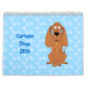 Un calendario de la diversión para 2014 perros lindos de atracción del dibujo animado. Los modelos del fondo están en sombras del azul.