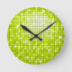 El reloj de pared con una diversión y "una mirada estilizada enrrollada de la teja del espejo del disco" imprimió el modelo en sombras de la verde lima y del blanco. Puede ser utilizado como fondo para su propio texto, imágenes e ideas. Observe por favor esto es una imagen digital impresa del arte, no brilla ni contiene los espejos o el purpurina reales.