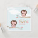 Bebés dulces del pequeño búho de la perca rosada soñoliento en la rama delicada de flores. Perfeccione cuando los chicas gemelos están en la manera.