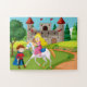 Embarque en un viaje mágico con nuestro encantado Puzzle de Jigsaw para niños de Aventura Castillo! Este cautivador rompecabezas cuenta con un príncipe valiente al lado de un majestuoso caballo blanco con una manga dorada y una silla azul. La bella princesa se sienta elegantemente sobre el caballo, lista para una aventura emocionante. Esta encantadora escena, rodeada de frondosos árboles verdes y un paisaje sereno, se asoma a un gran castillo con torres de topos rojos y banderas ondulantes, y da vida al encanto y la maravilla de los cuentos de hadas clásicos. Perfecto para los niños y los aficionados a los cuentos de hadas. Es un regalo ideal para cumpleaños, vacaciones o cualquier ocasión especial.