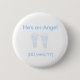 Él es un botón del ángel con huellas azules. Tiene un lugar en la parte inferior donde usted puede añadir su propia fecha.