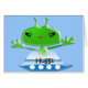 Espacio Ultraterrestre Ultracomunitario Kawaii Green Alien Abraza Tarjeta de nave espacial azul
