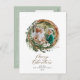El follaje moderno mínimo era una postal de Navidades navideños con escritura Feliz Navidad. El eucalipto pintado a mano, el follaje mínimo y la moderna corona rústica de mimbre le dan a esta tarjeta un ambiente lujoso. En verdes, marrones y grises elegantes.