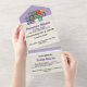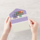 Esta invitación con temática científica "todo en uno" con tarjeta RSVP extraíble presenta un fondo de diagramas Feynman simplificados en púrpura pálido sobre una base lila. En la parte superior de este patrón se encuentran los paneles de crema con una línea blanca para dar la impresión de una baseboard en la parte inferior de una pared que proporciona una base para el texto de muestra en el interior que se puede personalizar para su evento y el espacio en blanco en el exterior que se puede usar para dirigir las tarjetas al destinatario y la sección que se puede devolver con la dirección de retorno apropiada. Finalmente, un conjunto de bloques de alfabeto de madera con temática física, con la ley de gravitación universal de Newton, se sienta sobre la solapa por encima del texto y en la parte posterior cuando se cierra. Entre los elementos de la fórmula se encuentran bloques con un telescopio, una bombilla y un conjunto de bolas Newton para mostrar algunos de los diversos conceptos y campos asociados con la física. No olvide visitar la colección Future Physicist's Blocks para tener más regalos y productos para una ducha de bebé o la pequeña en su vida.