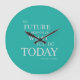 "El futuro depende de lo que hagas hoy" - inspirador reloj de pared de citas motivacionales, en un diseño tipográfico elegante de colores verde azulados y sin blanco, perfecto para tu oficina, tu gimnasio o tu casa. Esta cita inspiradora es de Mahatma Gandhi. <b>Sugerencia:</b>-Puede cambiar el color de fondo a cualquier color oscuro que desee. Primero haga clic en el botón "Personalizar" para mostrar todas las herramientas de diseño. -Borra el archivo de imagen de fondo negro, haz clic en el botón 'Editar', haz clic en la opción 'Fondo...' y elige tu color! Para más citas inspiradoras, posters de tipografía geniales e interesantes regalos de diseño, visita:<a href="http://www.zazzle.com/artofinspiration*" title="Inspirational Quotes">Arte de Inspiración</a>