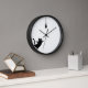 El gato negro del reloj de pared atrapa un pez