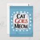 "Cat Goes Meow" es un divertido diseño de texto con una forma de acento blanco rodeado de puntos de textura caprichosos.