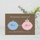 Comparta el momento que usted descubre si su bebé es un muchacho o un chica con la familia y los amigos. Invíteles con este género elegante revelan la invitación del fiesta en marrón con los bebés rosados y azules. Personalice el texto para adaptarse a su propia reunión. Para cambiar las fuentes apenas hacen clic en el "personalizar él" botón.