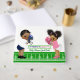 El género del fútbol revela el libro de invitados de una ducha de bebé con una linda bebé afroamericana y un niño vestido con equipo de fútbol en un fondo de campo de fútbol. Este libro de visitas para bebés de fútbol se personaliza fácilmente para tu evento simplemente agregando tus detalles en el estilo de letra de tu elección. También puede cambiar las palabras del cartel.