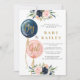 Género de globos revelan invitación a la ducha de bebé, revelación de género floral, invitación azul marino y rosa