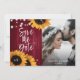 Girasol rústico de Borgoña salva las tarjetas de fotos de dátiles con girasoles en el fondo de un granero adornado con luces de cuerda.