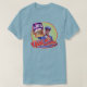 El color es muy bonito al natural, como la foto. El tejido es suave y de buena calidad. Sin defectos en el tintado, ni hilos sueltos o descosidos. Bien la impresión. Los bordes de las letras y el dibujo son nítidos, y el color contrasta muy bien con el de la camiseta.