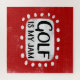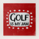 "Golf Is My Jam" es un divertido diseño de texto con una forma de acento blanco rodeado de puntos de textura caprichosos.