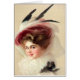 El ilustracion del vintage de una mujer joven bonita en un rosa coloreó el gorra adornado con las plumas blancas y negras del halcón