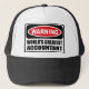 El gorra MÁS GRANDE del CONTABLE del MUNDO amonestador que usted puede modificar para requisitos particulares en www.WarningSignShirts.com y que ofrece una señal de peligro roja y negra y a un CONTABLE MÁS GRANDE del MUNDO de letras negras intrépidas de advertir el mundo. Usted puede también modificar su propio gorra de la señal para requisitos particulares de peligro con el texto que usted quiere.