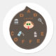 Esta hoja de pegatinas redondos muestra a un personalizado de un papá que es un monstruo del café. Su cara está dentro de una gran gota de café y tiene una lengua espeluznante y está empezando a calmarse. Azúcar, leche, café y una cuchara lo rodean, todo lo que necesita para su bebida favorita. El texto marrón claro dice: "Papá ama el café".