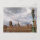 Postal del Big Ben, las Casas del Parlamento y un típico farol en la ciudad de Londres, capital del Reino Unido con el texto: 'Amor desde Londres'.