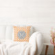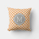 Almohada de tiro decorativa elegante y moderna en diamantes oscuros de moda del gris de carbón de leña, del naranja y del blanco y modelo geométrico de los círculos con el monograma de encargo.
