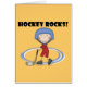 El hockey oscila las camisetas, tazas, imanes, tarjetas, pegatinas, las bolsas de asas, sudaderas con capucha, y ofreciendo una figura jugador del palillo de hockey masculino con patines, un palillo de hockey, y casco y el texto que lee "rocas del hockey!".