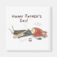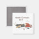 Un imán del día del padre con Chapel Smith, una linda chica pelirroja con dos colas de ponis rojas tendidas en el suelo inconsciente, que fue derribada por el campo de béisbol de su padre con su vieja gorra azul y blanca de béisbol, un bate de béisbol y el béisbol en el suelo, sus gafas rociaban en su cara con estrellas alrededor de su cabeza. También está el dicho "Feliz Día del Padre". ¡Un regalo perfecto para cualquier padre o abuelo!